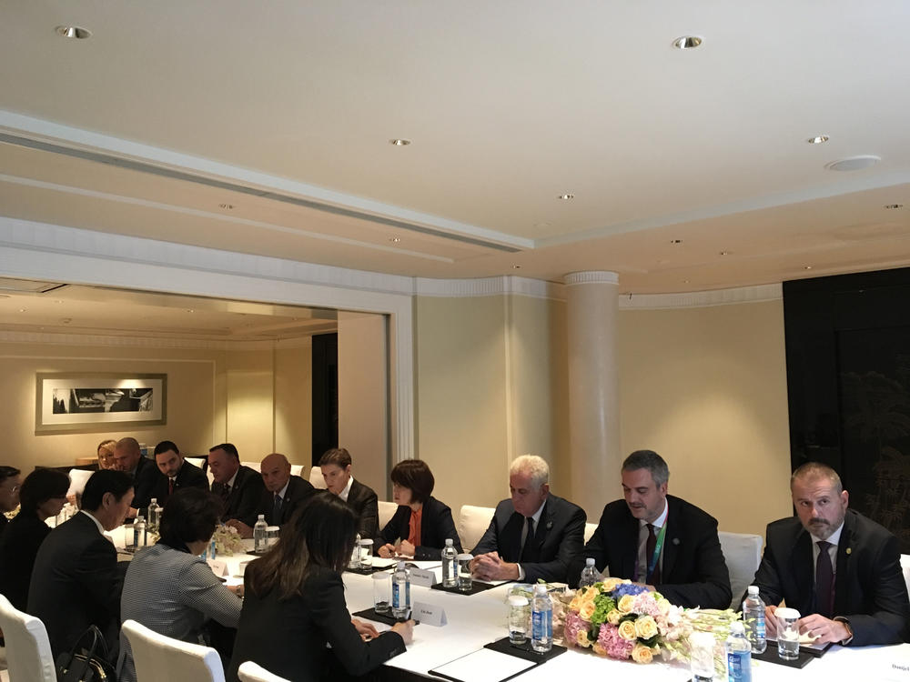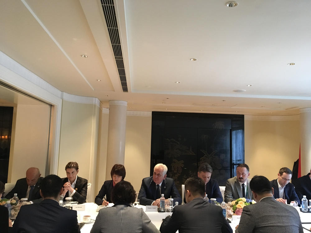 Na sastanku su i ambasadorka Kine u Srbiji Čen Bo, ambasador Srbije u Kini Milan Bačević i predsednik Saveta za koordinaciju saradnje sa Kinom i Rusijom Tomislav Nikolić.
