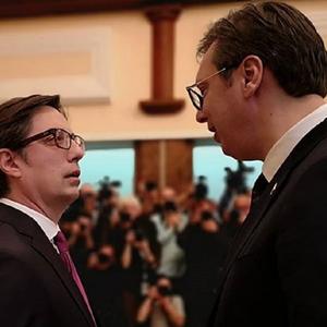 - U političkim odnosima, osim različitih stavova u pogledu nezavisnosti Kosova, nemamo nijedno drugo otvoreno pitanje. Želimo da gradimo najbliže prijateljske odnose - rekao je Vučić posle sastanak sa predsednikom Severne Makedonije Stevom Pendarovskim.