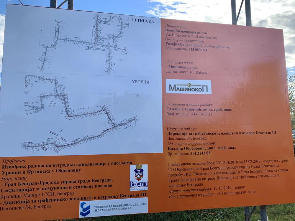 Zamenik gradonačelnika Goran Vesić prisustvovao je početkom novembra, početku izgradnje kanalizacione mreže u selima Urovci i Krtinska i najavio njihov završetak za godinu dana.
