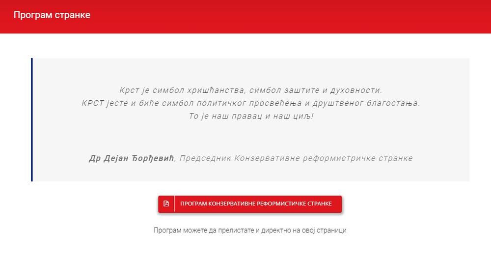 "Krst je simbol Hrišćanstva, simbol zaštite i duhovnosti. KRST jeste i biće simbol političkog prosvećenja i društvenog blagostanja. To je naš pravac i naš cilj!"