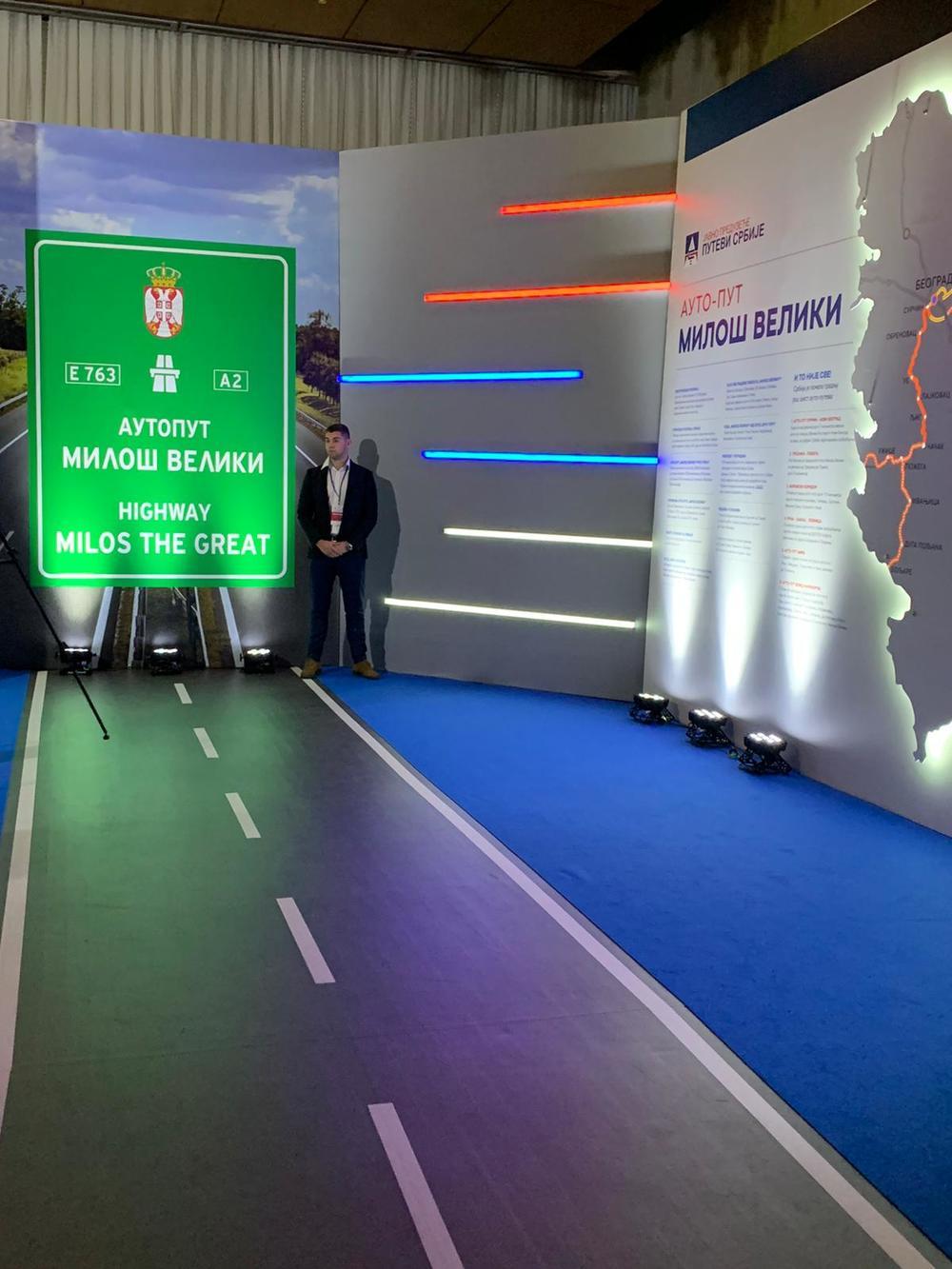 16:24 - Na kraju tunela otvara nam se Koridor 10. U delu izložbe na kom je on predstavljen prikazan je most Vrla, to je najviši most u zemlji, zaštitni znak Koridora 10. Najviša tačka mosta je na 62 metra, a svake večeri ovaj most svetli u bojama srpske zastave. Tunel Manajle je inače najduži tunel u Srbiji, ukupne dužine 1.808 metara. Na koridoru 10 od drugih znamenitosti nalaze se Momin kamen, galerija i tunel Bancarevo, Suva planina. Iz sale koridor 10 ulazi se u salu Miloš Veliki, posvećenu novoizgrađenom autoputu. U njoj se mogu pogledati spisi iz Miloševog doba, a izložena je i njegova dolama.