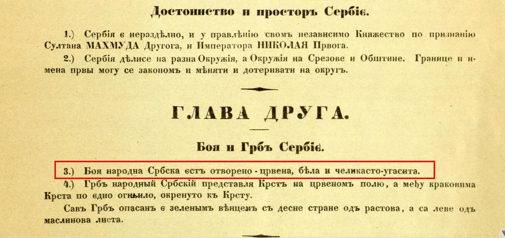 „Boja narodna Srbska jest otvoreno-crvena, bjela i čelikasto-ugasita”.