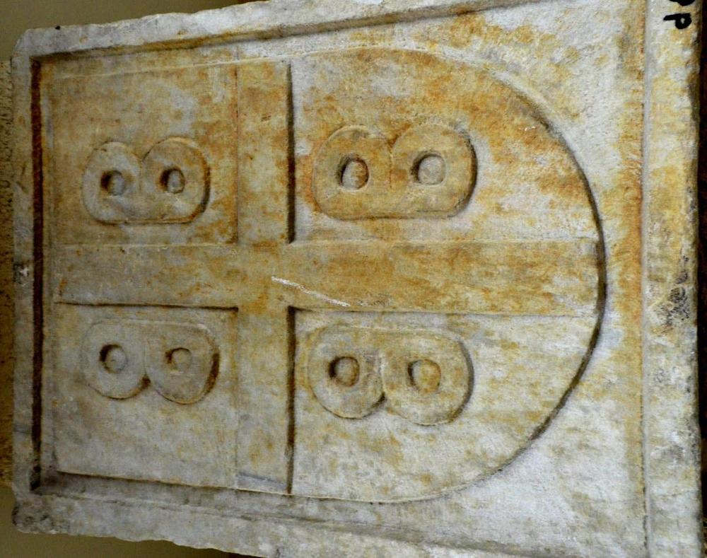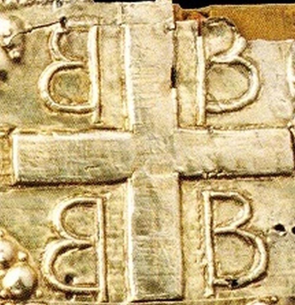 Istinski akronim 4 x „β” oko krsta je tradicionalni grčki (vizantijski) simbol. Znači: „Car Careva caruje nad carevima” (βασιλεὺς βασιλέων, βασιλεύων βασιλευόντων).