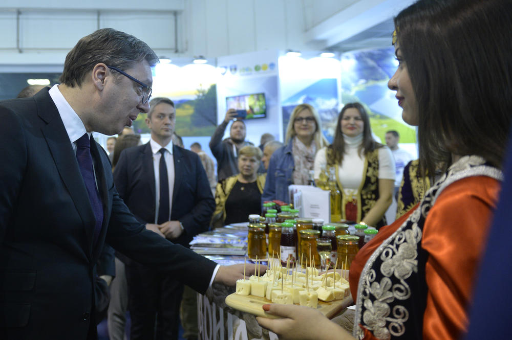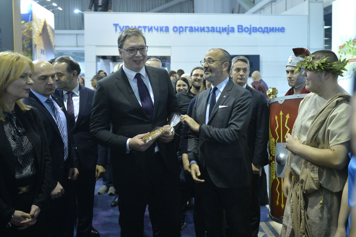 Predsednik Srbije Aleksandar Vučić prisustvuje danas 42. Međunarodnom beogradskom sajmu turizma.