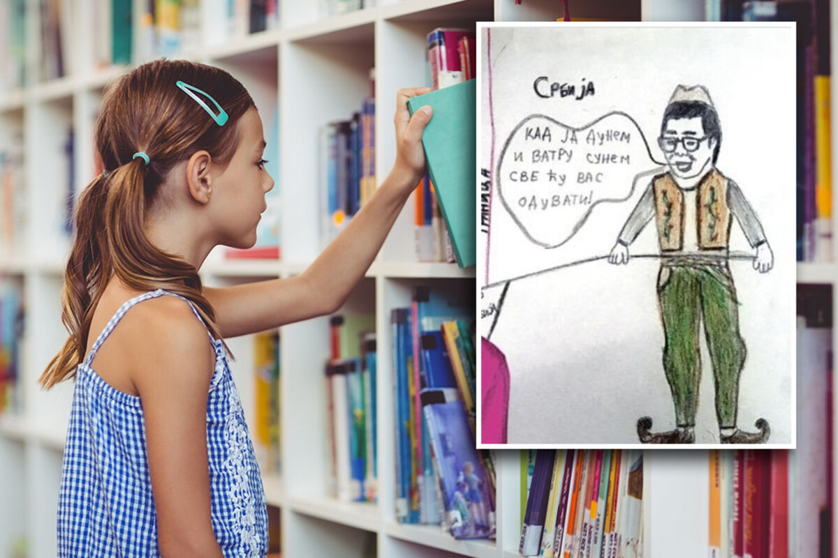 Na Dejaninom crtežu prikazan je Albanac koji kaže: „Kosovo je naše“, i predsednik Vučić, koji mu odgovara: „Kad dunem i vatru sunem, sve ću vas oduvati“, a između njih je nacrtana „granica“, koju je devojčica obeležila crvenom bojom i na njoj napisala „Kosovo je Srbija“. Dejanina majka Mirjana A. kaže nam da devojčica pohađa likovnu školu i redovno gleda televiziju sa roditeljima, te da, kad se na ekranu pojavi predsednik, za njega kaže da je „veliki“, što ju je i podstaklo da ga samoinicijativno naslika.