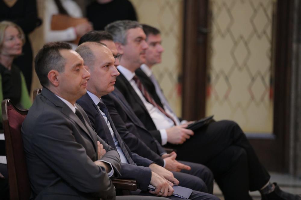 Takođe, sastanku prisustvuju i predsednik PKS Marko Čadež, ministri u vladi Nebojša Stefanović, Siniša Mali, Aleksandar Vulin, direktor policije Vladimir Rebić...
