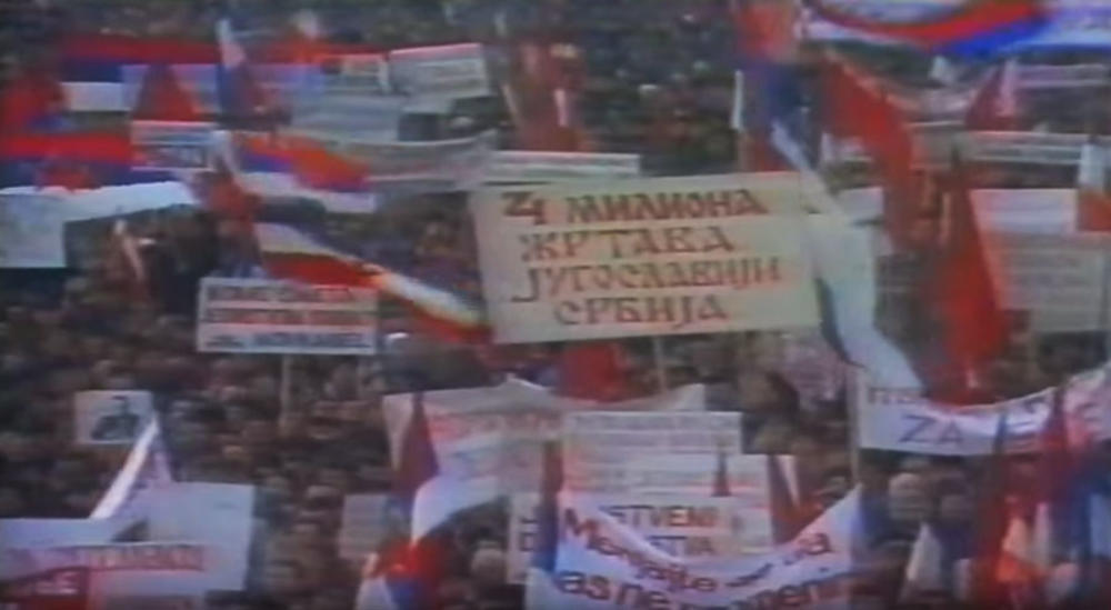 Kad smo konačno stigli u blizinu Skupštine shvatili smo da su ti mitinzi zapravo jako dosadna stvar i da ustvari nemamo pojma ni zašto smo došli, još manje šta čekamo. Flaše su kružile okolo, ljudi su svašta pričali, neki bi nešto i dreknuli, bilo je različitih zastava, uglavnom Jugoslovenskih sa petokrakom, Titovih slika, pričalo se da se čeka dolazak Miloševića...
