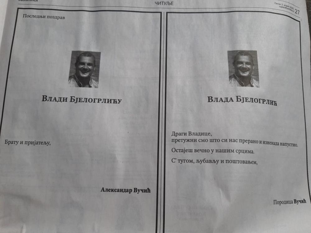 - Dragi Vladice, pretužni smo što si nas prerano i iznenada napustio. Ostaješ večno u našim srcima. S' tugom, ljubavlju i poštovanjem.