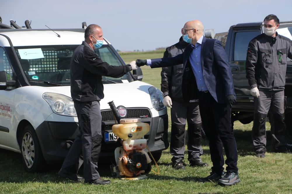 - Ovo je oprema kojom branimo Novosađane od komaraca, krpelja i drugih insekata. Zaposleni u ''Ciklonizaciji'' su prethodnih osam nedelja svakodnevno bili u borbi protiv Kovida 19, dezinfekcijom ulica, objekata, stambenih zgrada. Zahvaljujem im se na angažmanu za vreme vanrednog stanja, nisu se bavili komercijalnim uslovima, već su sve vreme bili na visini zadatka. Krećemo i u borbu protiv komaraca, što je sada još bitnije, s obzirom na situaciju sa virusom. Grad ima dvogodišnji ugovor sa ovom kompanijom vredan140 miliona dinara. Raspolažu odličnom opremom kao što su amfibijska vozila, helikopter, dva aviona, najbolja mehanizacija i primer su za ceo region. Takođe imaju najbolje stručnjake koji prave strategiju, te koriste najsavremenija sredstva – naglasio gradonačelnik Vučević