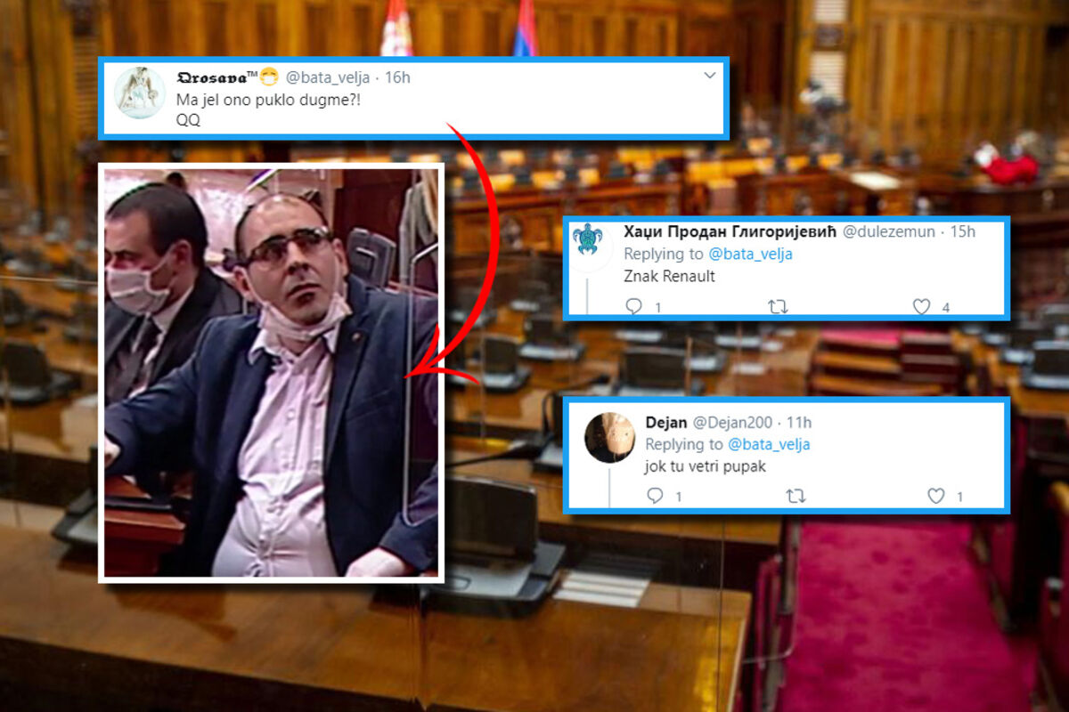 - Ma jel ono puklo dugme, napisla je jedna osoba na Tviteru iznad fotografije.