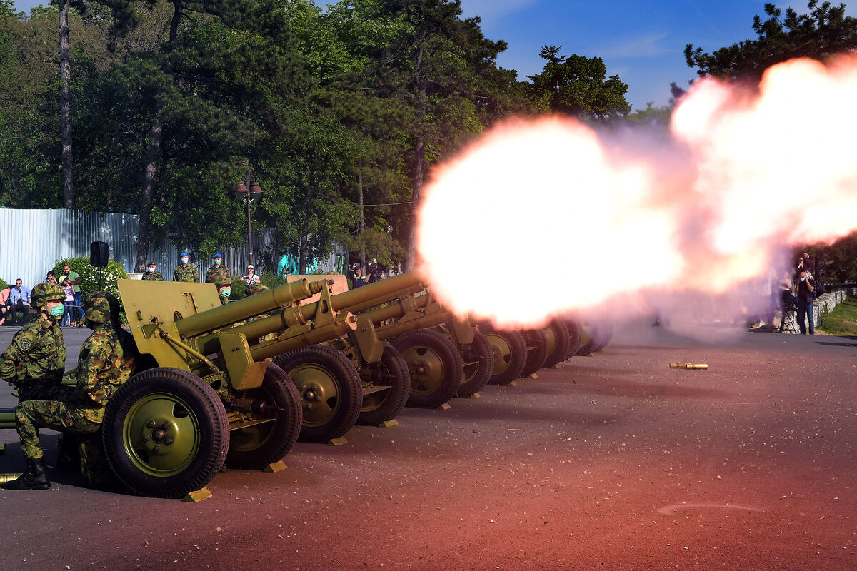 Povodom 9. maja – Dana pobede nad fašizmom, pripadnici Garde Vojske Srbije izvršili su počasnu paljbu sa Savske terase na Kalemegdanu ispaljivanjem deset plotuna iz šest artiljerijskih oruđa.