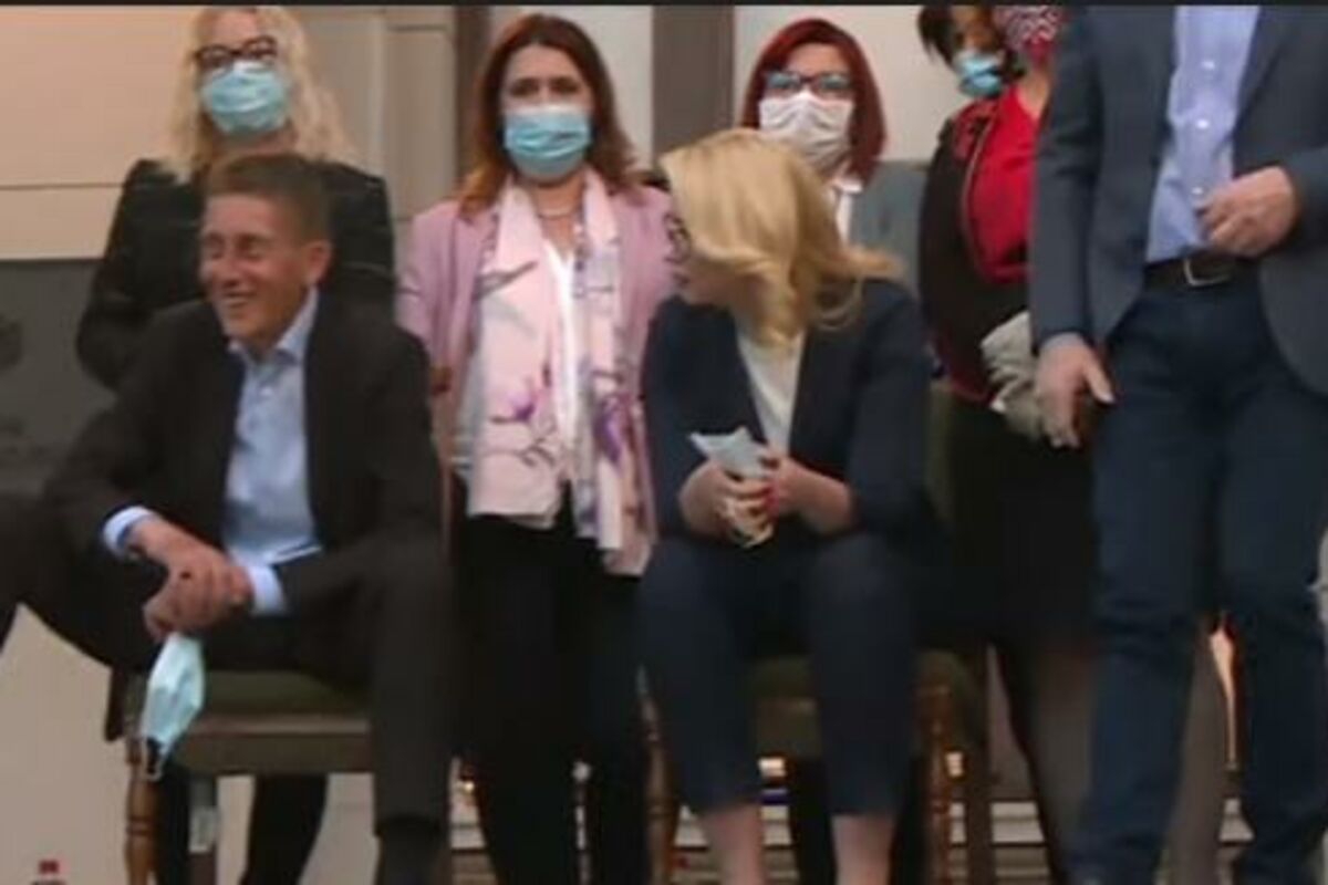 Ispred Skupštine Srbije oko 21 sat i dalje su poslanici koji su danas stupili u štrajk glađu, vladajuće većine Aleksandar Martinović i Sandra Božić, kao i lider Dveri Boško Obradović i samostalni poslanik Miladin Ševarlić.