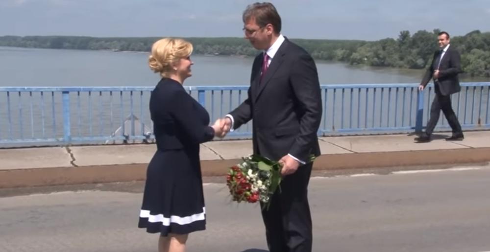 Premijer Srbije Aleksandar Vučić i predsednica Hrvatske Kolinda Grabar Kitarović sastali su se danas na mostu na Dunavu, u međugraničnoj zoni kod Erduta.