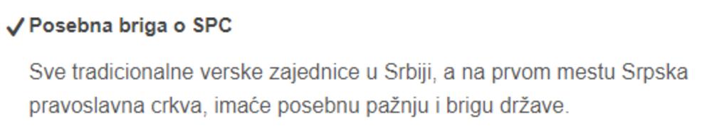 - Sve tradicionalne verske zajednice u Srbiji, a na prvom mestu Srpska pravoslavna crkva, imaće posebnu pažnju i brigu države.