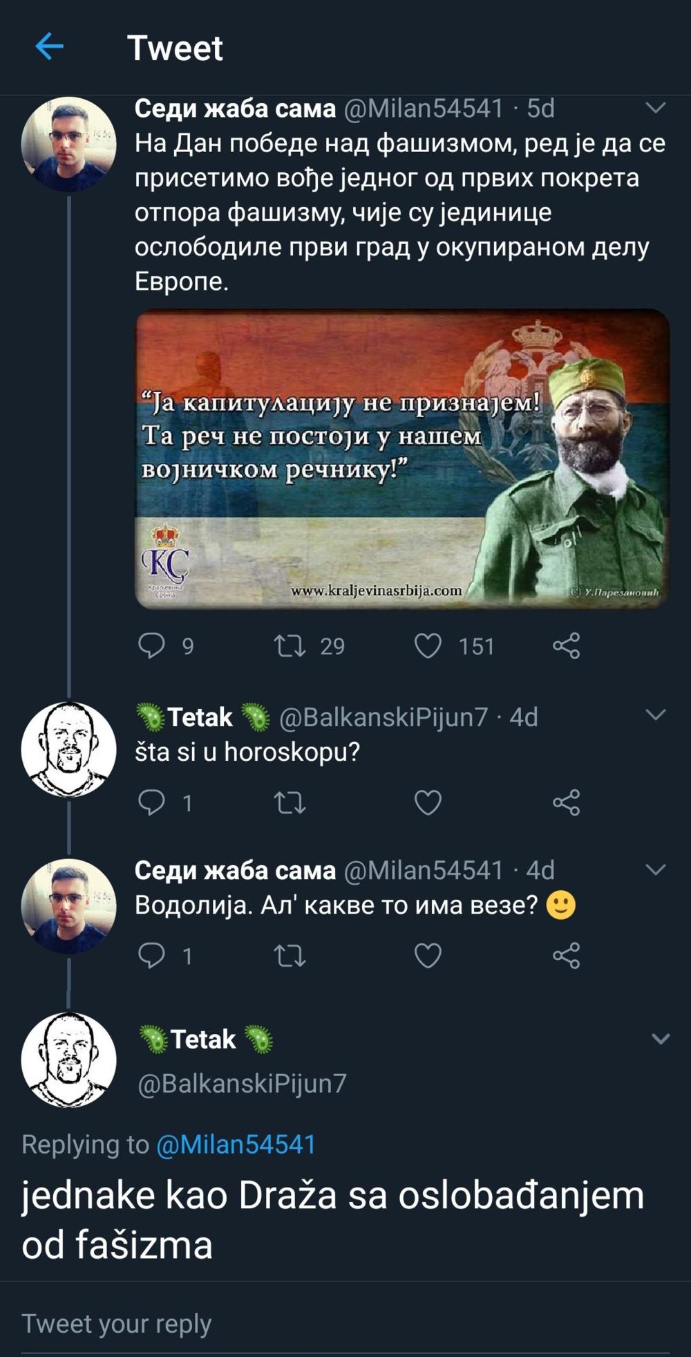 NAJBRUTALNIJE SPUŠTANJE NA TVITERU IKADA: Sve je počelo sa DRAŽOM i ČETNICIMA!