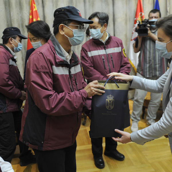 "Nakon 82 dana boravka u Srbiji, kineski tim eksperata se vraća u Kinu. Želim u ime Vlade Srbije i svih građana da se zahvalim, pre svega, kineskom predsedniku, a onda i ambasadi Kine u Beogradu i celom timu eksperata, kao i njihovim porodicama, zato što su odigrali jednu od ključnih uloga u našoj borbi protiv kovida-19", rekla je premijerka.