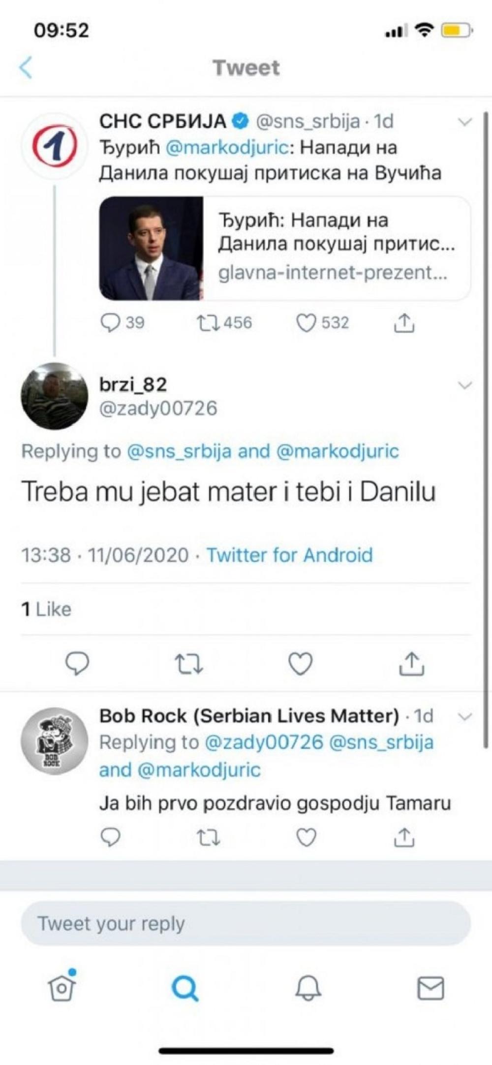 Ovog puta na meti su se našli na tviteru Danilo, supruga Tamara, ali i žena koja je ostavila komentar u kom je mirnim tonom napisala da decu ne treba mešati u sve ovo.