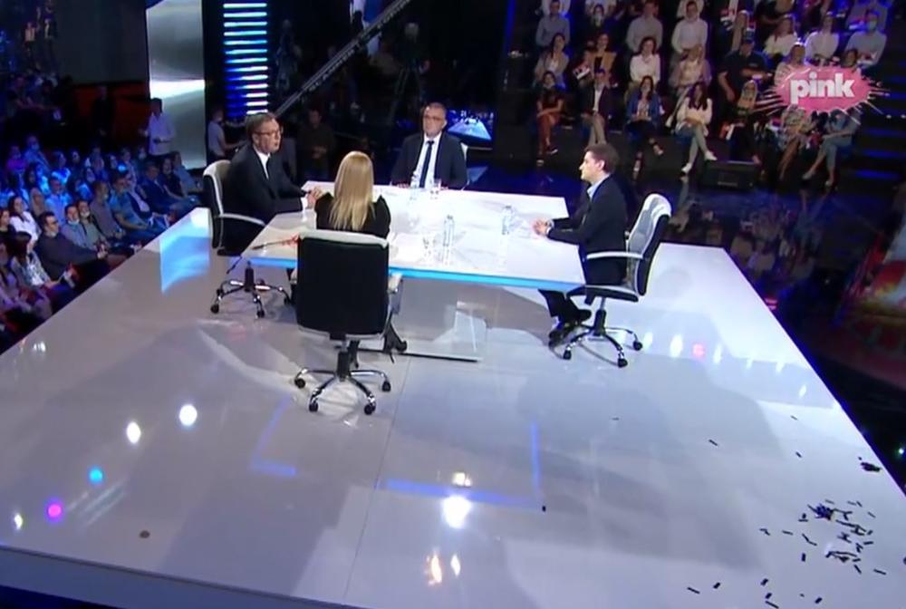 21:47 - Spektakularan doček u Studiju 5 TV Pink za predsednika Vučiča.