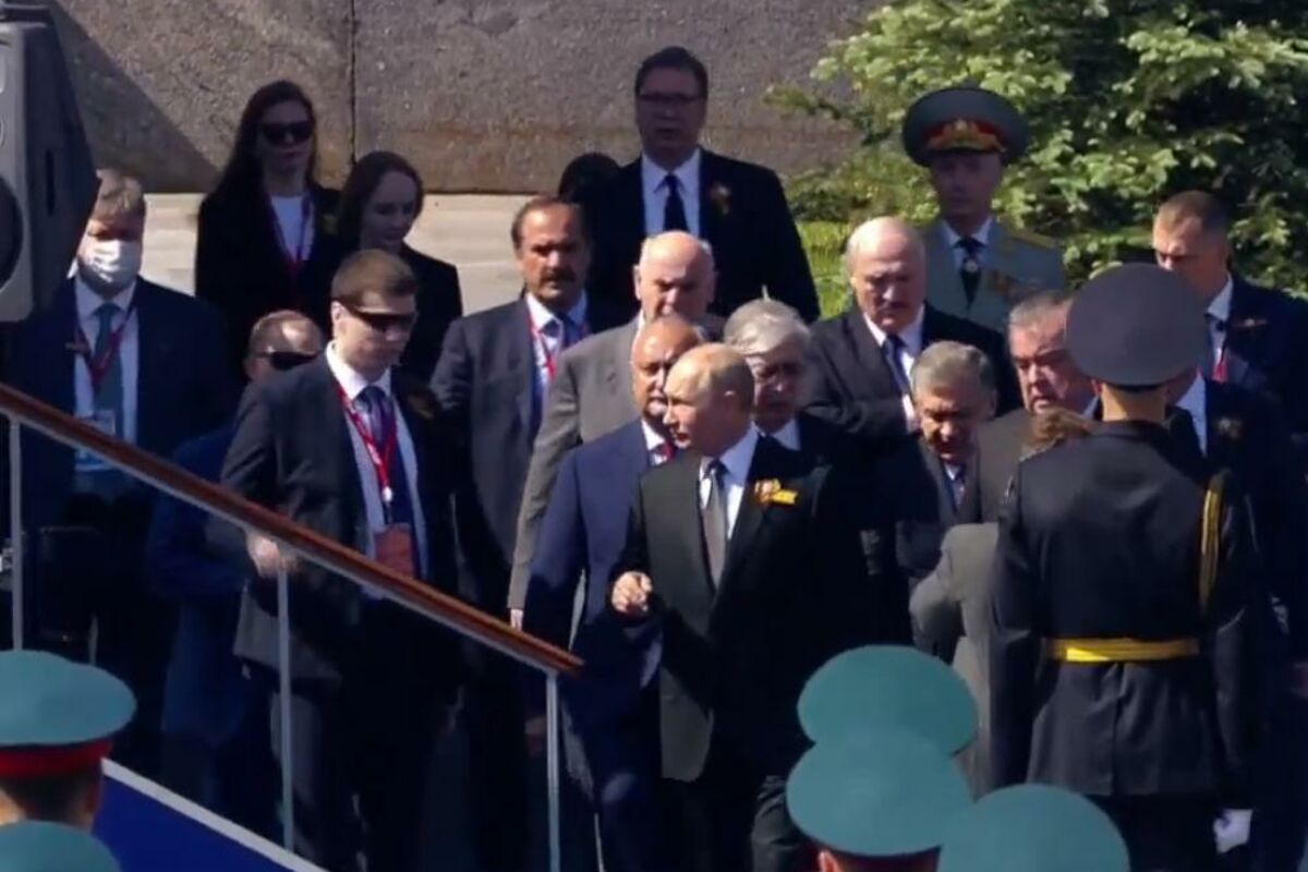Putin je po dolasku na paradu pozdravio pozvane svetske zvaničnike, a među njima se našao i Milorad Dodik, koji zajedno sa predsednikom Vučićem prisustvuje Vojnoj paradi.