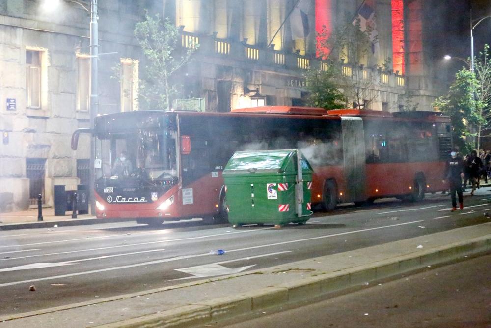 Naveo je i da je uništeno sedam policijskih vozila, teško oštećeno oko 30 privatnih vozila, zapaljeno jedno privatno vozilo, uništeni izlozi na radnjama i invetar u lokalima.