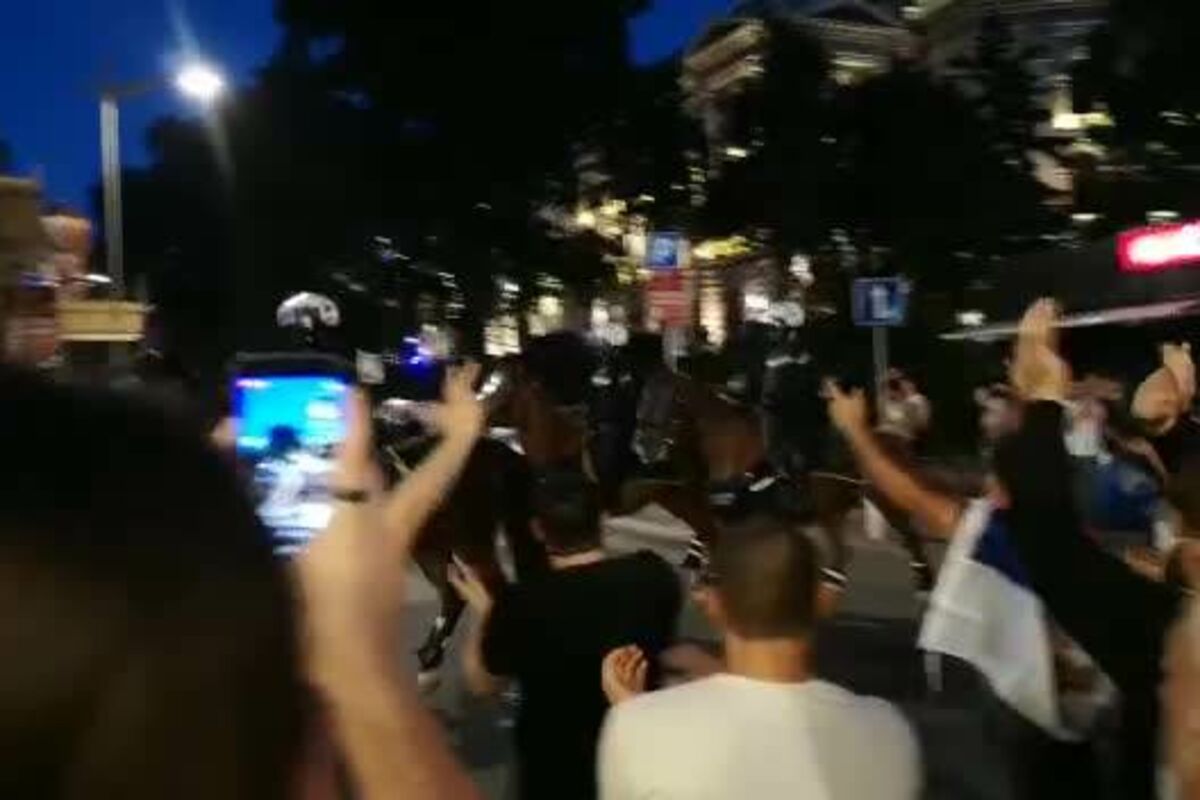 Policija je posle toga praktično prošla kroz tu grupu, a onda je i deo konjičke jedinice uradio to isto uz aplauze naroda koji se našao na mestu sa koga se sve ovo videlo.