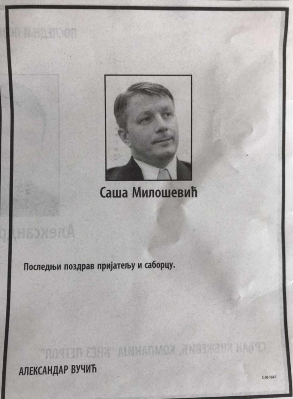 Poslednji pozdrav prijatelju i saborcu. Aleksandar Vučić - piše u čitulji.