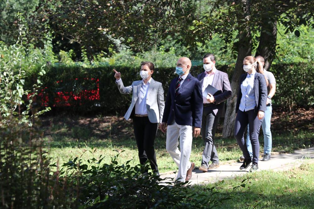 Naime, Ana Brnabić, kao i njena pratnja, imale su bele zaštitne maske, dok je dekan nosio zelenu masku.