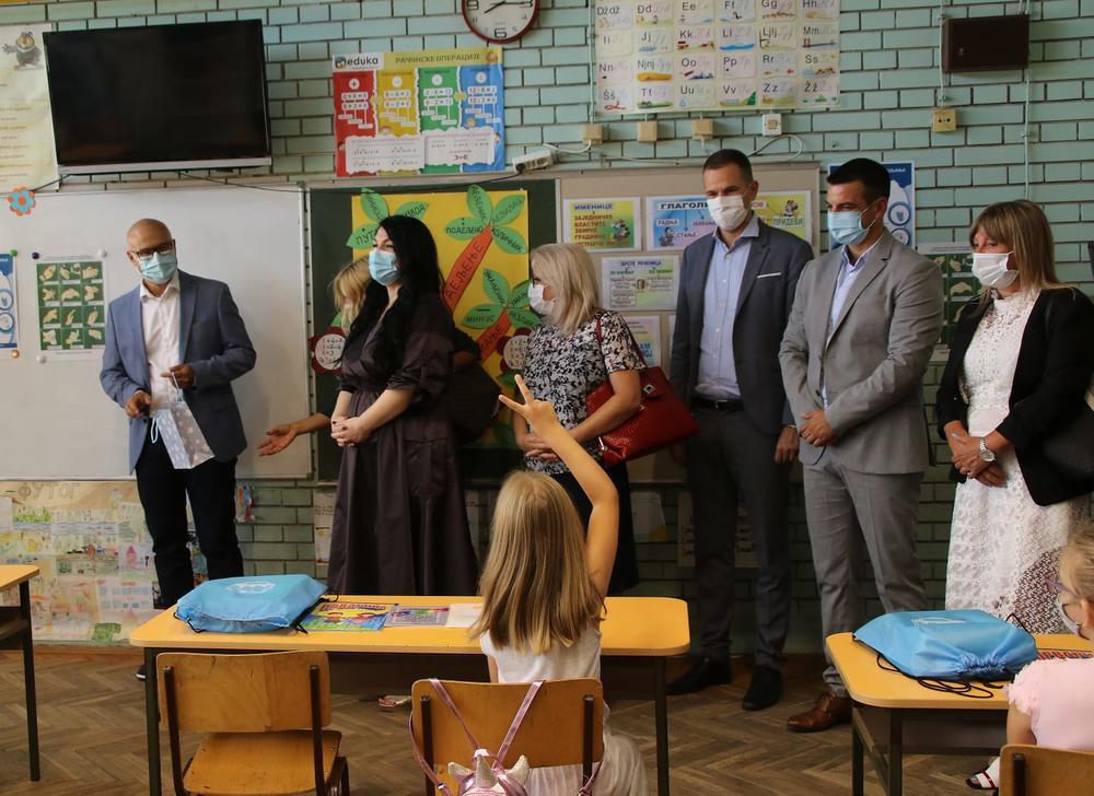 - Nošenje maski je postalo naša svakodnevica. Grad je i ove godine obezbedio svim đacima prvacima komplet udžbenike, za one kategorije učenika kojima to ne obezeđuje Ministarstvo, a kupljeno je čak 3800 kompleta, sa još dve publikacije - Prvaricom i Uvodom u azbuku. Za to je izdvojeno 28 miliona dinara. Zahvaljujući donatorima obezbedili smo i po dve platnene maske i dezinfekciono sredstvo za sve đake od 1. do 4. razreda svih škola u Novom Sadu, a vrednost donirane robe je oko 2,5 miliona dinara. Posebna pažnja mora da se posveti prevenciji u toku epidemije, a na tome se radi i kod kuće i sa učiteljima – naglasio je gradonačelnik Miloš Vučević i dodao da se svega 2% roditelja izjasnilo da im deca ne idu na nastavu, već da će je pratiti on-lajn.