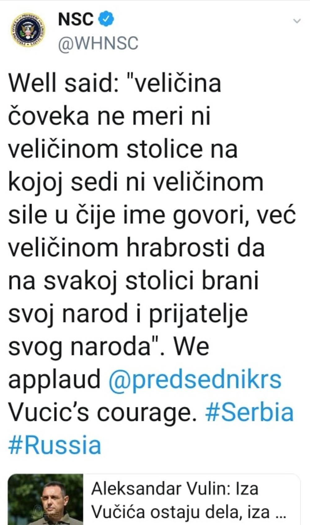 Na sve to O'Brajen je dodao: "Aplaudiramo Vučićevoj hrabrosti"!