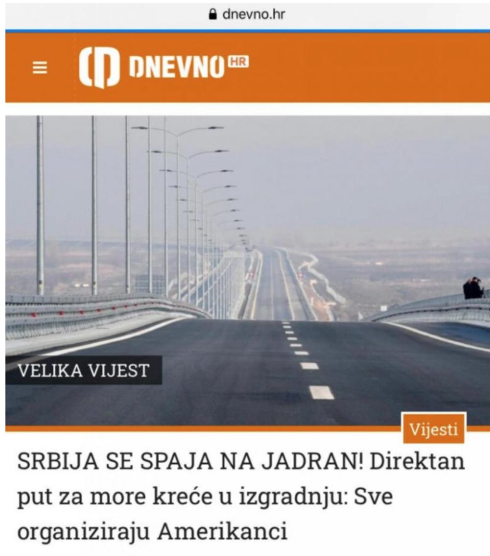Ovaj hrvatski portal ističe da bi ro praktično bio još jedan autoput koji bi Srbiju direktno povezao s morem.