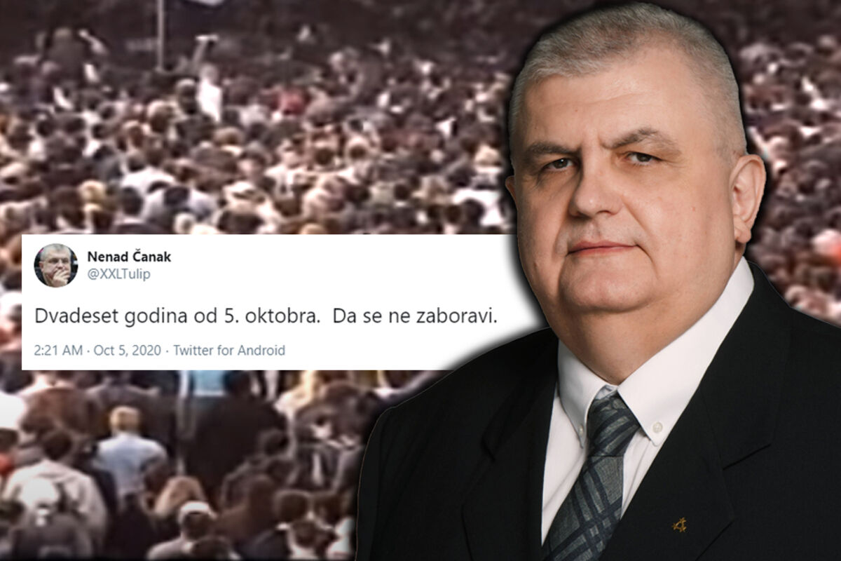 - Dvadeset godina od 5. oktobra. Da se ne zaboravi, napisao je Čanak na Tviteru i izazvao mnoštvo uvreda koje su dolazile na njegov račun.