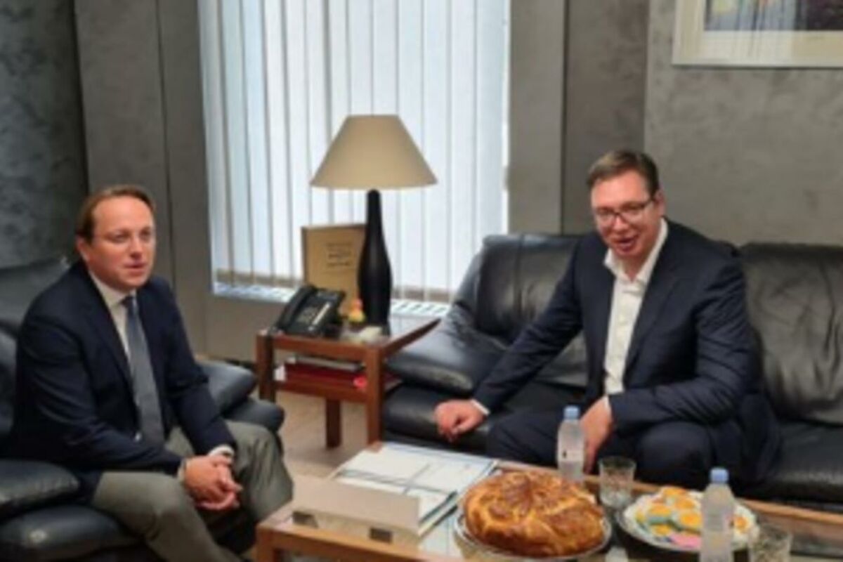 Predsednik Srbije Aleksandar Vučić sastao se danas u Beogradu sa evropskim komesarom za susedstvo i proširenje Oliverom Varhejijem.