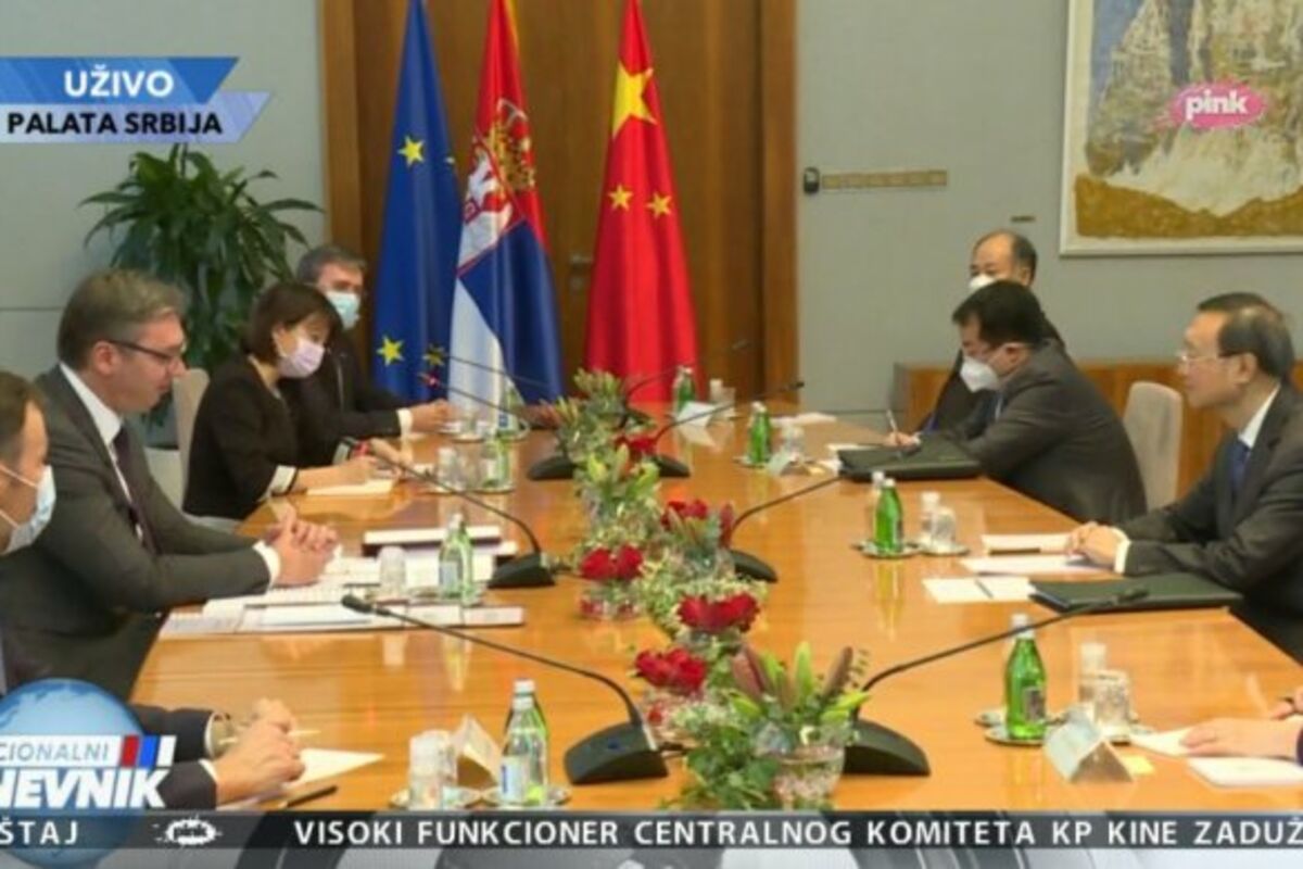 Član Politbiroa Centralnog komiteta Komunističke partije Kine Jang Đieči u poseti Srbiji, a nakon sastanaka sa premijerkom Anom Brnabić i ministrom spoljnih poslova Ivicom Dačićem, sreo se sa predsednikom Srbije Aleksandrom Vučićem u Palati Srbija.