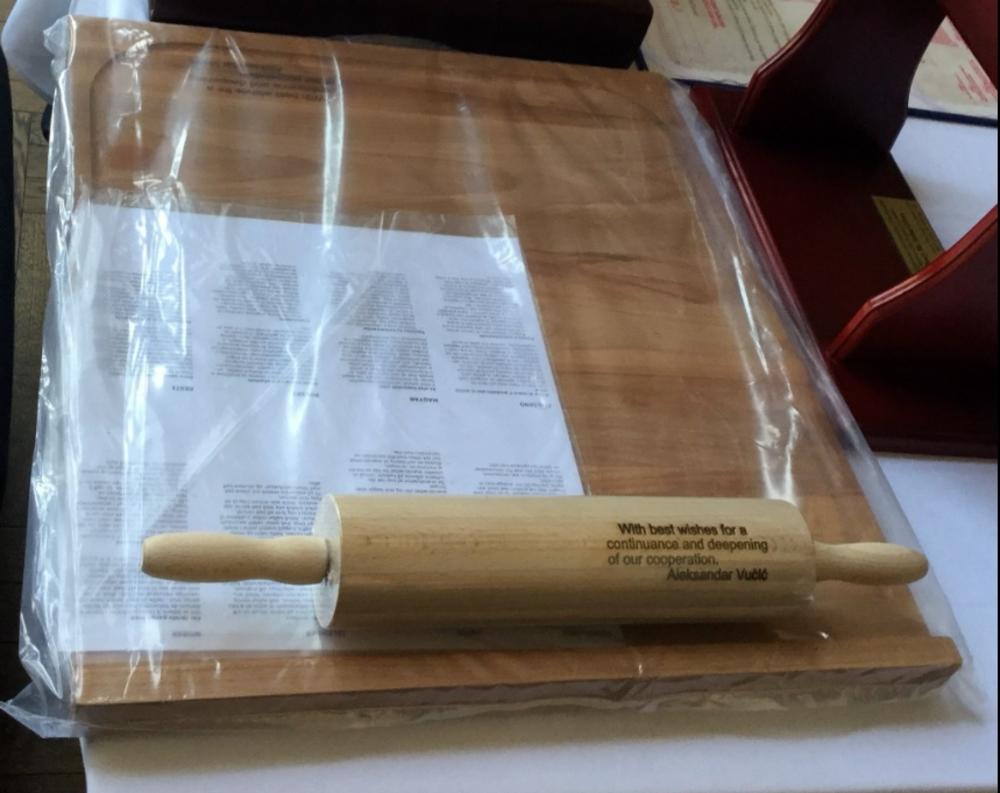 U okviru posete švedskog predsednika Stefana Levena našoj zemlji, srpski premijer Aleksandar Vučić je iskoristio priliku i da uvaženom gostu između diplomatskih razgovora pokloni knjigu, sablju, dasku i oklagiju koje se u Srbiji proizvode za potrebe čuvene kompanije "Ikea".