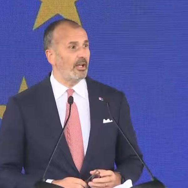 Prvi se zvanicama obratio šef EU u Srbiji Sem Fabrici koji je sve prisutne pozdravio na srpskom a zatim govor nastavio na engleskom jeziku. On je rekao da će ova godina ostati zapamćena po koroni ali i po povezivanju ovde u Srbiji koje je osnov tržišne ekonomije u EU. On je naglasio i da je Srbija danas jedan od najvećih korisnika EU grantova - bespovratnih investicija te naglasio da su troškovi logistike u EU 10-12 odsto a u Srbiji čak 20 što se održava i na troškove i na ekologiju.