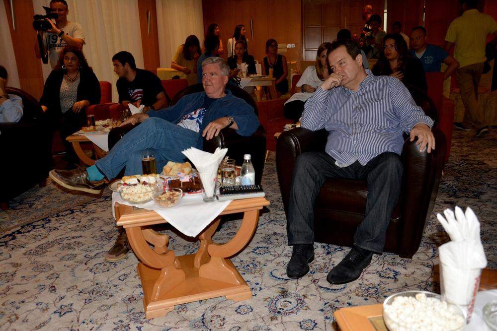 On je utakmicu gledao zajedno sa američkim ambasadorom u Srbiji, Kajl Skatom.