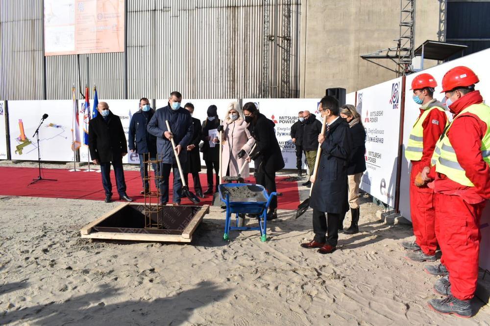 Kamen temeljac položili su potpredsednica Vlade i ministarka rudarstva i energetike Zorana Mihajlović, ministarka Irena Vujović, v. d. direktora Elektroprivrede Srbije Milorad Grčić i direktor japanske kompanije "Micubiši Hitači Pauer Sistem" Šiničiro Micujama.