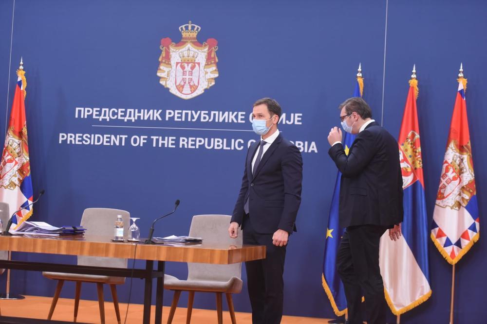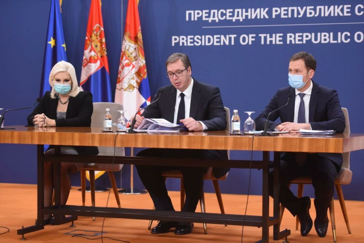 Predsednik Aleksandar Vučić obraća se javnosti posle sastanka koji je održao s ministrima u Vladi Srbije i direktorima javnih preduzeća zaduženim za strateške projekte iz oblasti infrastrukture, rudarstva, energetike i privrede.