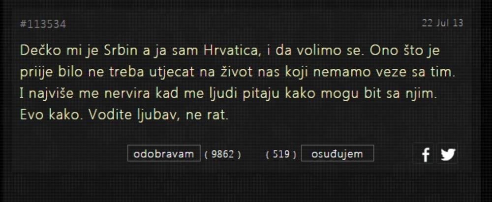 - Hteli smo da pokažemo da nas ne interesuje da li ona kao Hrvatica nosi srpski i ja kao Srbin nosim hrvatski dres, sve je to isto - ispričao je mladić koji je želeo da se njihova poruka ljubavi proširi što dalje.