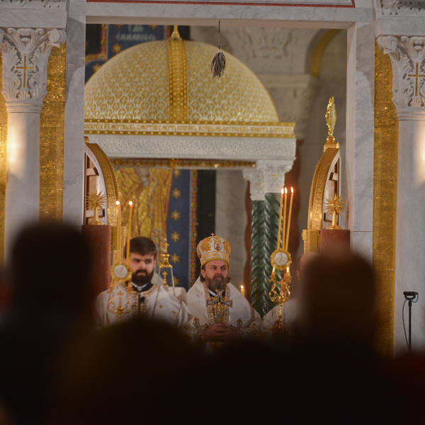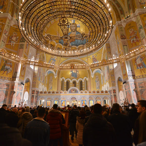 Sinoć, tačno u ponoć, održana je Božićna liturgija u pravoslavnim hramovima širom zemlje, a liturgija u Hramu Svetog Save služio je episkop remezijanski Stefan, uz sasluženje sveštenstva Hrama.