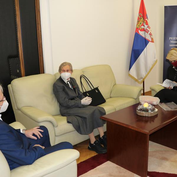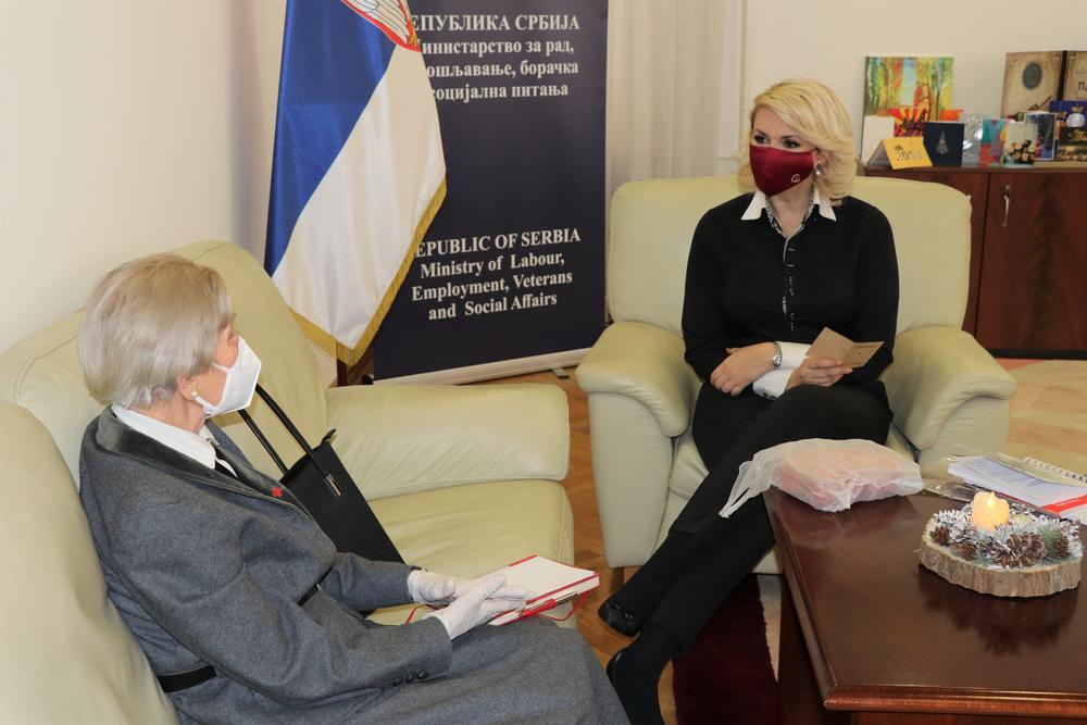Ministarka Kisić Tepavčević ugostila je gospođu Šmic, a uz čaj od nane, koji je bakin omiljeni čaj, razgovarale su o doprinosu volontera u teškim situacijama,a naoročito u epidemiji korona virusa, koja je pogodila čitav svet.