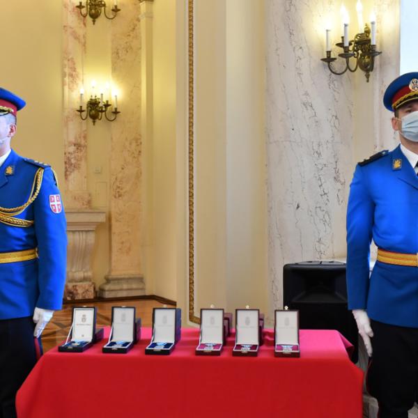 Izaslanik predsednika Republike i vrhovnog komandanta Vojske Srbije Aleksandra Vučića potpredsednik Vlade i ministar odbrane dr Nebojša Stefanović uručio je danas zaslužnim pripadnicima Ministarstva odbrane i Vojske Srbije odlikovanja dodeljena Ukazom predsednika, povodom proslave Dana Vojske Srbije i angažovanja na sprovođenju mera na sprečavanju širenja pandemije virusa Kovid-19 i pružanja pomoći civilnom stanovništvu. Današnjoj ceremoniji u Starom generalštabu prisustvovao je i načelnik Generalštaba Vojske Srbije general Milan Mojsilović. Ukazima predsednika Republike pripadnici Ministarstva odbrane i Vojske Srbije odlikovani su zlatnim i srebrnim medaljama za zasluge i srebrnim medaljama za revnosnu službu. Ministar Stefanović uručio je dve zlatne medalje za zasluge, sedam srebrnih medalja za zasluge i 15 srebrnih medalja za revnosnu službu. Čestitajući odlikovanim pripadnicima u ime predsednika Republike, ministar odbrane naglasio je da su svi oni priznanja zaslužili nesebičnom ljubavlju prema Srbiji, požrtvovanim radom i bezrezervnom borbom za našu zemlju. On je dodao da je, kao što je i predsednik Srbije, ponosan na sve odlikovane pripadnike Ministarstva odbrane i Vojske Srbije. - Svaki Srbin zna šta znači vojničko odlikovanje. Ono se na uniformi nosi s ponosom i kao potvrda časti i dostojanstva ostavlja u nasleđe generacijama koje dolaze. To nije samo simbol, već ogromna privilegija, večiti dokaz hrabrosti, požrtvovanosti i slave. Ova najviša državna odličja priznanja su svim našim pripadnicima i još jedan su od pokazatelja važnosti uloge pripadnika Ministarstva odbrane i Vojske Srbije. Ona će zauvek ostati podsetnik da otadžbina ne zaboravlja i nikada neće zaboraviti vaša dela, ali i to koliko i predsednik i država poštuju vaša zalaganja, trud i rad - rekao je ministar Stefanović. Odličja koja ćete ponosno nositi govore i o vama, poručio je ministar odbrane i dodao da su ona još jedan u nizu dokaza da zahvaljujući osobinama koje krase odlikovane pripadnike oni nikada ne odustaju, bez obzira na okolnosti i prepreke i bez razmišljanja čine sve za dobrobit naših građana.