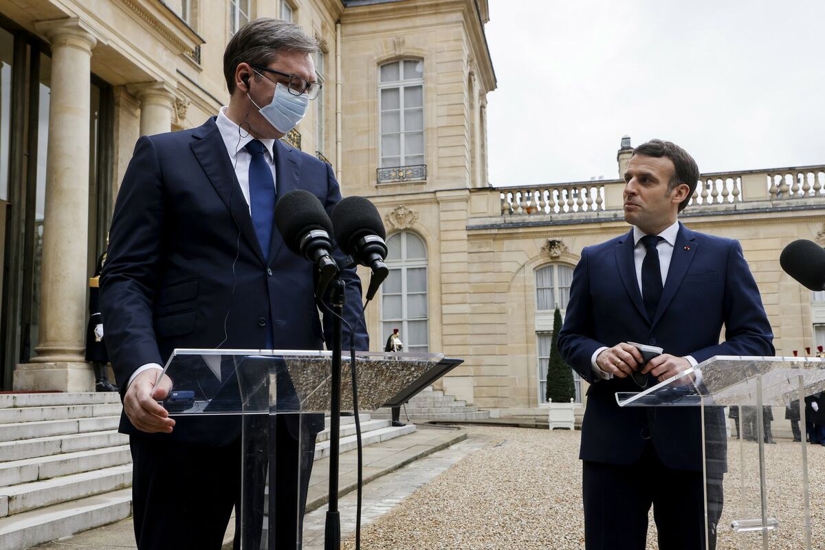 Makron je istakao da će sa Vučićem razgovarati o dijalogu Beograda i Prištine, navodeći da je to važan proces pregovaranja, koji se vodi pod nadležnošću EU.