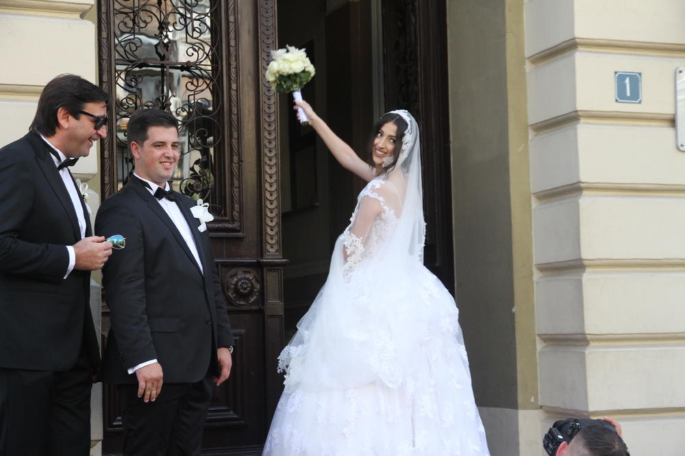 Kako običaji nalažu, mlada je bacila bidermajer ispred opštine.
