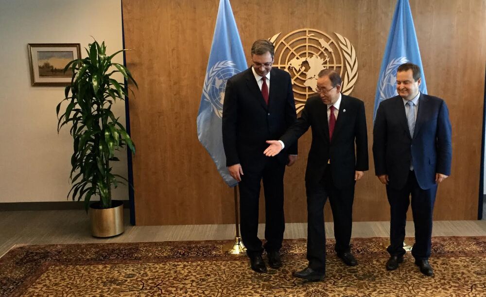 Generalni sekretar Ban Ki Mun je istakao da Srbija ima konstruktivnu ulogu u regionu i pohvalio napredak pregovora sa Evropskom unijom. On je premijeru zahvalio na podršci otvaranju kuće UN u Beogradu i čestitao mu na ponovnom izboru za predsednika Vlade Srbije.