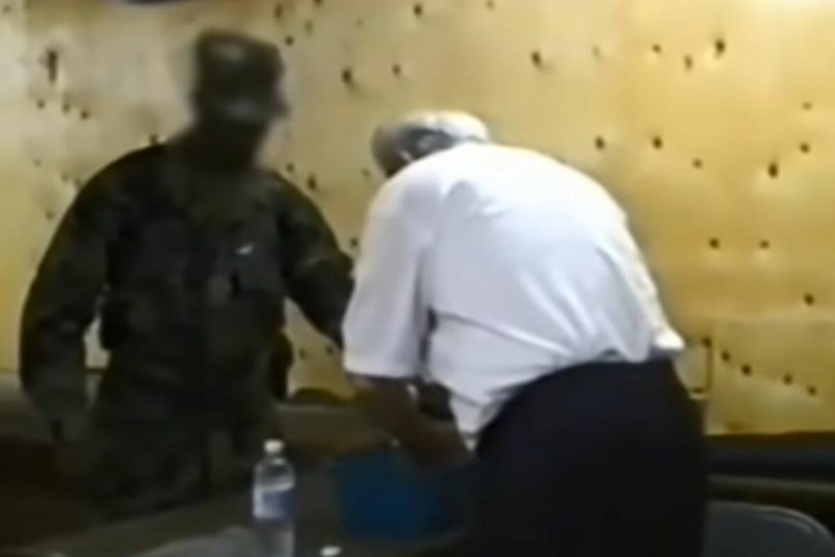 Milošević, u odelu i beloj košulji, ulazi u prostoriju u pratnji nekoliko osoba u maskirnim vojnim uniformama. Bivši predsednik SRJ je nekoliko trenutaka sedeo, potom mirno šetao po prostoriji sa rukama iz leđa, a u jednom trenutku je sa prisutnima počeo da razgovara na engleskom.