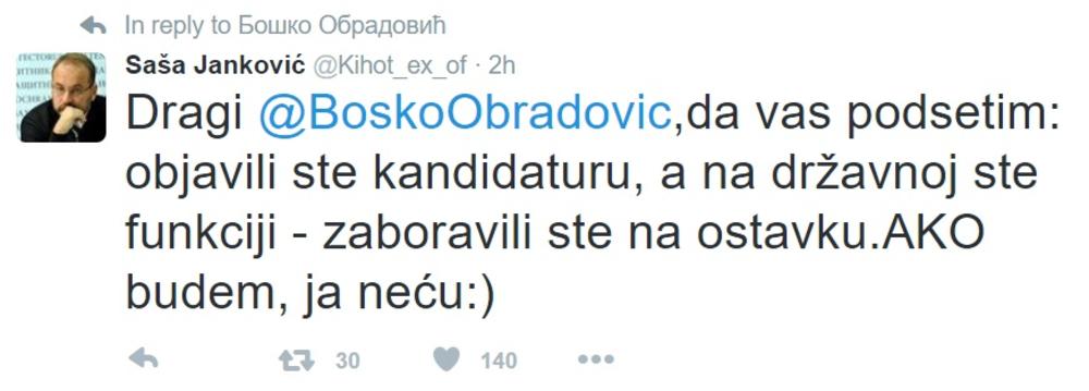 No, Janković mu je odmah i odgovorio: