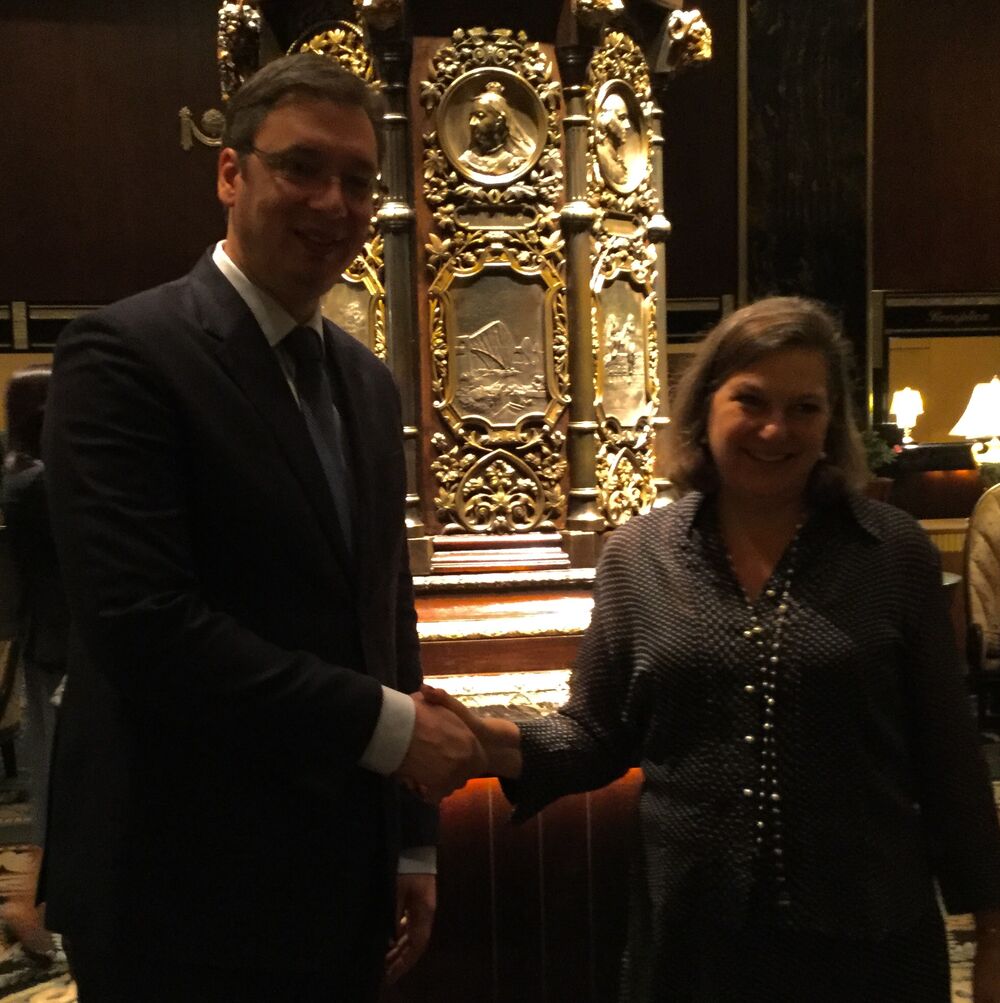 Predsednik Vlade Republike Srbije Aleksandar Vučić sastao se danas u Njujorku sa pomoćnikom državnog sekretara SAD Viktorijom Nuland, sa kojom je razgovarao o svim značajnim političkim pitanjima za Zapadni Balkan, napretku dijaloga sa Prištinom, situaciji u Bosni i Hercegovini i upoznao je sa željom Srbije da ubuduće unapređuje svoje odnose sa Republikom Hrvatskom.
