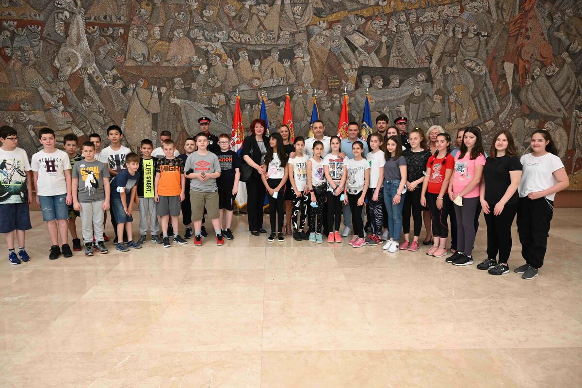 Učenici Osnovne škole „Dušan Jerković“ iz Rume, povodom obeležavanja slave i Dana Ministarstva unutrašnjih poslova, uručili su danas ministru unutrašnjih poslova Aleksandru Vulinu, ikonu Svete Trojice, koju su lično izradili. Ministar Vulin zahvalivši se na poklonjenoj ikoni istakao je da je on tu bio da ikonu primi, ali da je ona poklon svima onima koji rade u policiji, koji decu čuvaju svakoga dana i na koje mališani mogu da se oslone. „Deco, uvek se oslonite na svog policajca. Šta god da se desi možete da se oslonite na njega. Javite mu se i kada je dobro, biće mu drago, a kada je teško tražite pomoć i on će biti spreman da vam pomogne“, naglasio je ministar Vulin. Nijedan policajac, kako je istakao, nije izabrao tu profesiju da bi nekome činio zlo, već da bi činio dobro. „Pozdravite roditelje, kažite im da vas čuvamo i da ćemo vas čuvati, kao što čuvamo i njih. Šta god da radite mislite o njima, da li bi se vaši roditelji osećali ponosno ili tužno na ono što planirate da učinite“, poručio je ministar Vulin mališanima i istakao da su njihovi roditelji danas sigurno ponosni na njih, jer su napravili nešto vredno, u šta su uložili vreme, ljubav, trud i druženje. Ministar je istakao da ikona koju su deca izradila, govori da sve vredi i ima smisla, i da se svaki trud isplati za našu jedinu voljenu Srbiju. „Kakvi vi budete i kakvu vam Srbiju ostavimo takva će biti, vredna ponavljanja“, naglasio je ministar Vulin. Direktorka škole Nataša Stanić istakla je da su učenici rad na ikoni počeli u četvrtom razredu, i radili na njoj godinu dana u čemu im je podršku pružio njihov veroučitelj Kosta Stjepanović. Ona je navela da su đaci ove škole uradili oko 60 ikona, od kojih se u zgradi škole nalazi 15, dok su četiri poklonjene različitim institucijama u Rumi i dodala da su njihovim stopama krenule i škole drugih opština kako bi pokazale na koji način se neguju tradicija i vera, kao temelji države.
