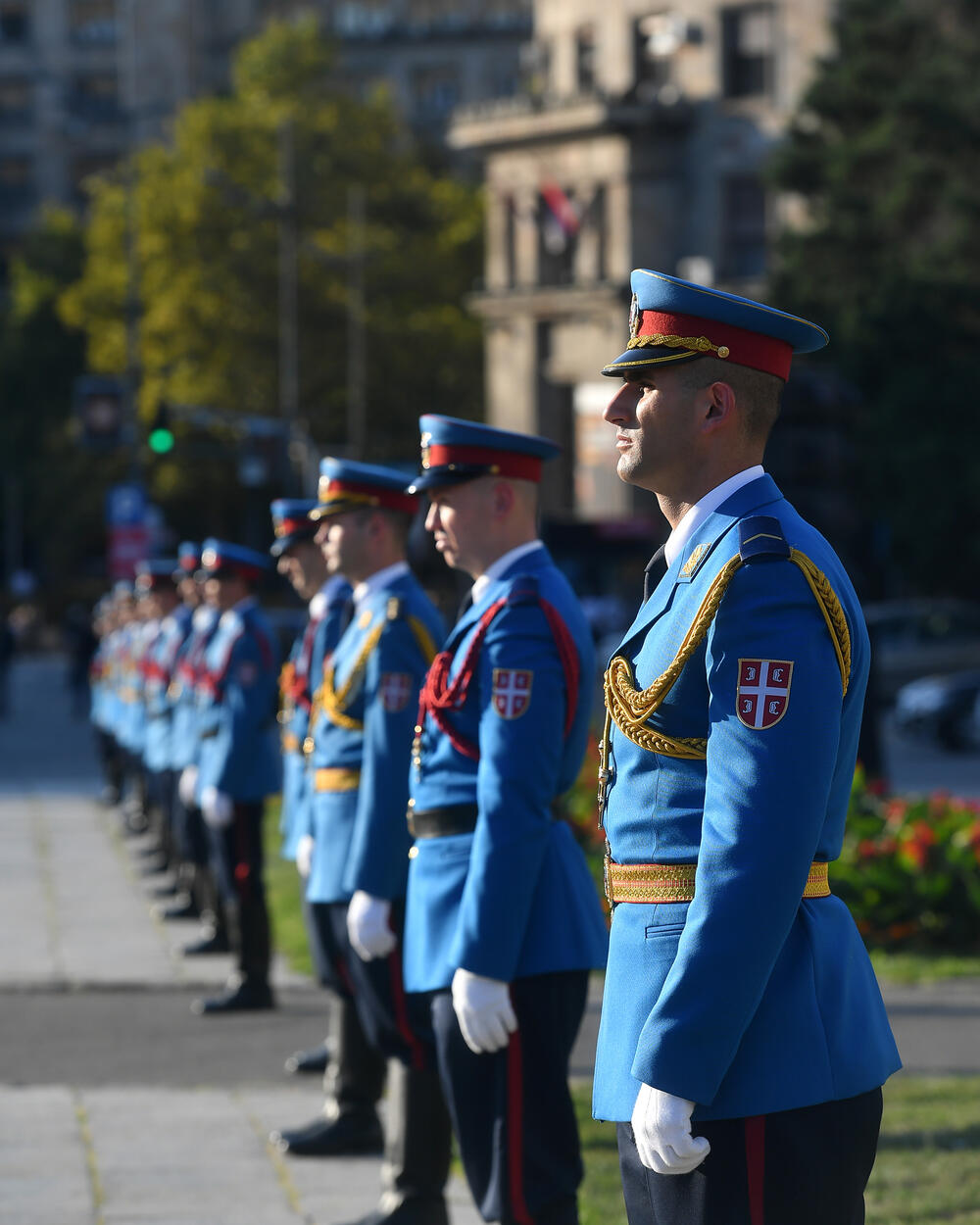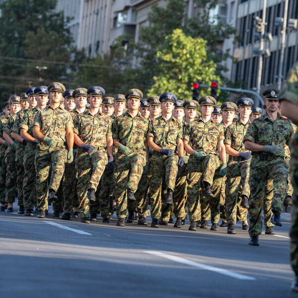 Kadeti završnih godina Vojne akademije i Medicinskog fakulteta VMA, danas su ponosno prodefilovali ispred Doma Narodne skupštine Republike Srbije, uvežbavajući nastup za sutrašnju svečanost na kojoj će, ukazom predsednika Republike Aleksandra Vučića, biti promovisani u najmlađe oficire Vojske Srbije.